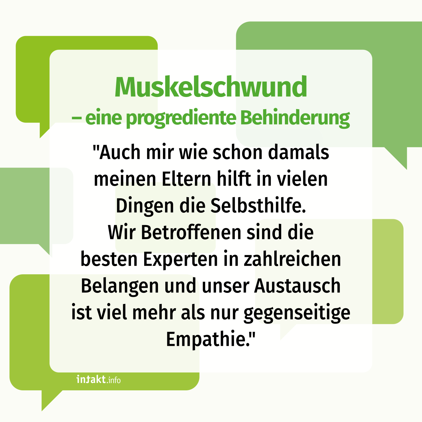 Wenn sie heute über wertvolle Unterstützungen in dieser Phase sprechen, nennen sie die lokale Frühförderstelle, die nicht nur mich in meiner Entwicklung förderte, sondern auch meine Eltern in einer wohltuenden Weise begleitete. Sie nennen außerdem die starke nachbarschaftliche und verwandtschaftliche Unterstützung, die mit Ratschlägen und Tatkraft zur Seite stand und meinen Eltern dadurch auch Aufgaben abnehmen konnte. Und drittens nennen sie die Selbsthilfe, die es möglich machte, von Erfahrungen Anderer zu profitieren und sich gegenseitig in einer empathischen und äußerst kompetenten Weise zu beraten. So gelang es meinen Eltern letztlich sehr gut, die Behinderung ihres Kindes zu verstehen, einzuordnen und anzunehmen.
