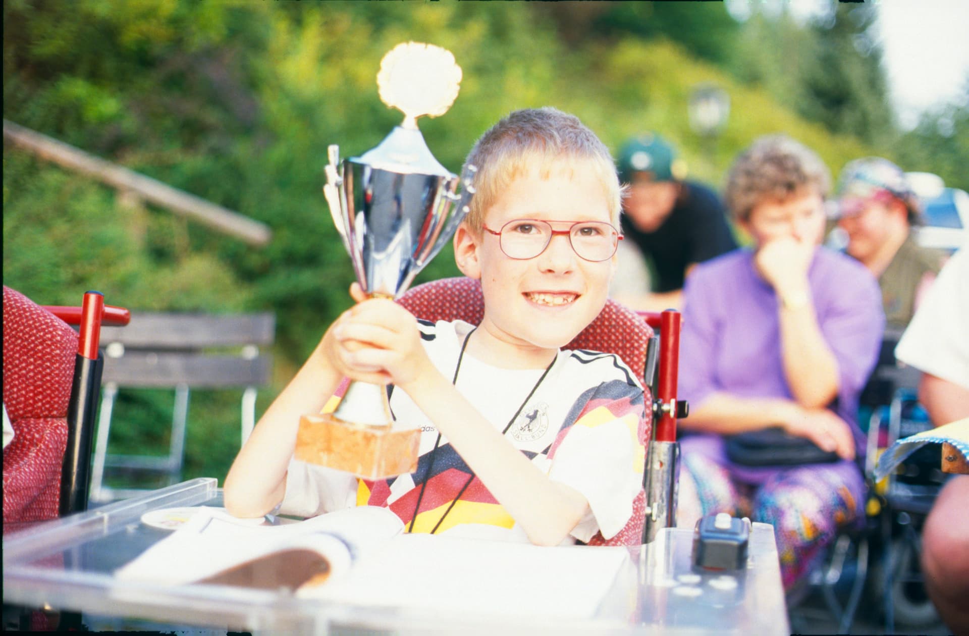 Diesen Weg haben meine Eltern gefunden. Dass mein Bruder wenige Monate später die gleiche Diagnose erhielt, war dabei weniger Hemmnis als viel mehr Antrieb. Schnell zogen sie in eine ebenerdige Wohnung, schnell wurden Stühle mit Rollen versehen, das Bobbycar verschenkt und stattdessen passende Spielsachen wie Lego gekauft. Sie kümmerten sich liebevoll um mich, förderten meine Entwicklung nahezu in Perfektion, sahen nicht meine Defizite im Vordergrund, sondern meine Fähigkeiten und erfreuten sich an meiner ununterbrochenen Lebensfreude und an meiner intellektuellen Entwicklung. Schon im Kindergarten konnte ich lesen und durfte dank meiner Eltern den Sport Elektrorollstuhl-Hockey (heute Powerchair Hockey) kennen und lieben lernen.