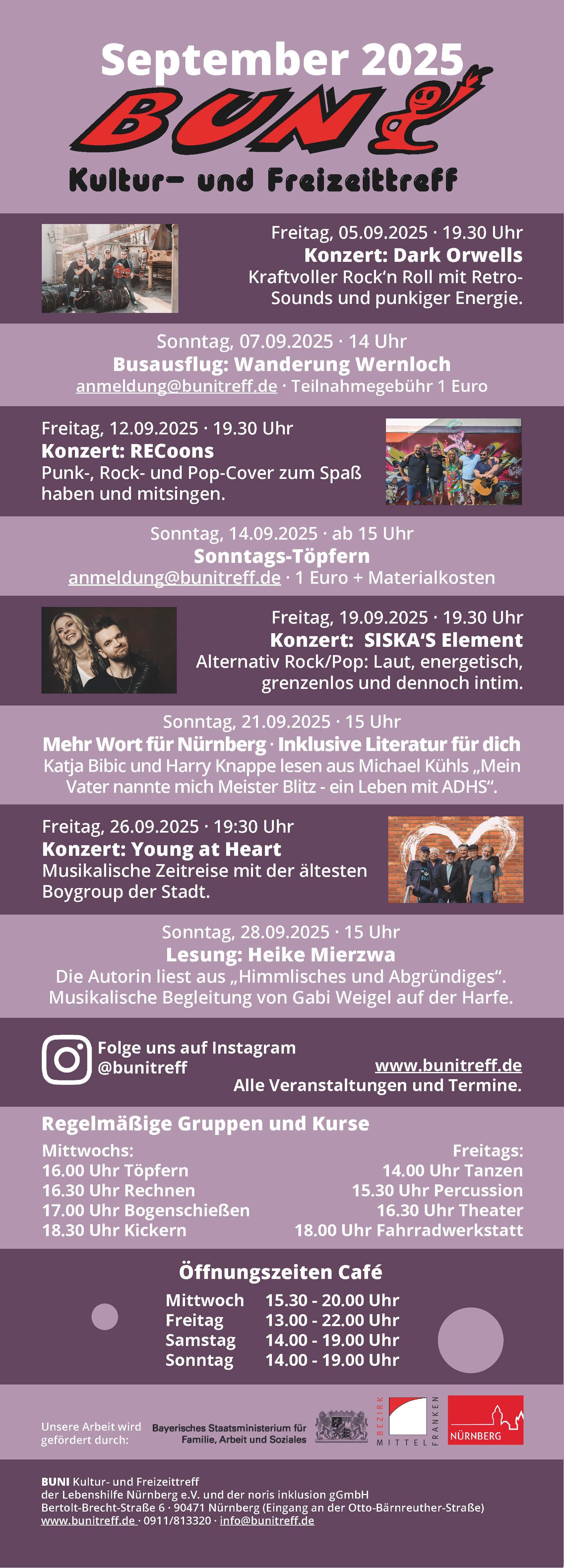 Hier kommt das neue Programm von BUNI für September 2025 ![]()