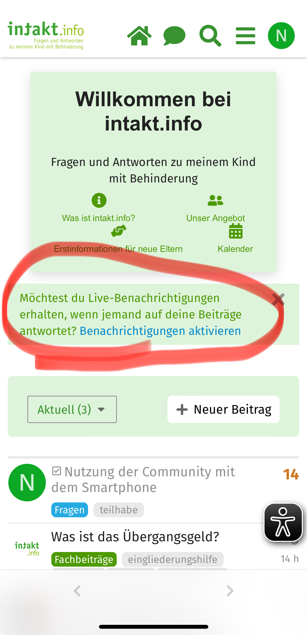 Wenn du dort mit einem Klick auf das Plus-Zeichen die Adresse community.intakt.info hinzufügst und dich dort einloggst bzw. den Zugriff genehmigst funktionieren auch Push-Nachrichten gemäß deiner Benachrichtigungseinstellungen. Das verwende ich ganz gerne